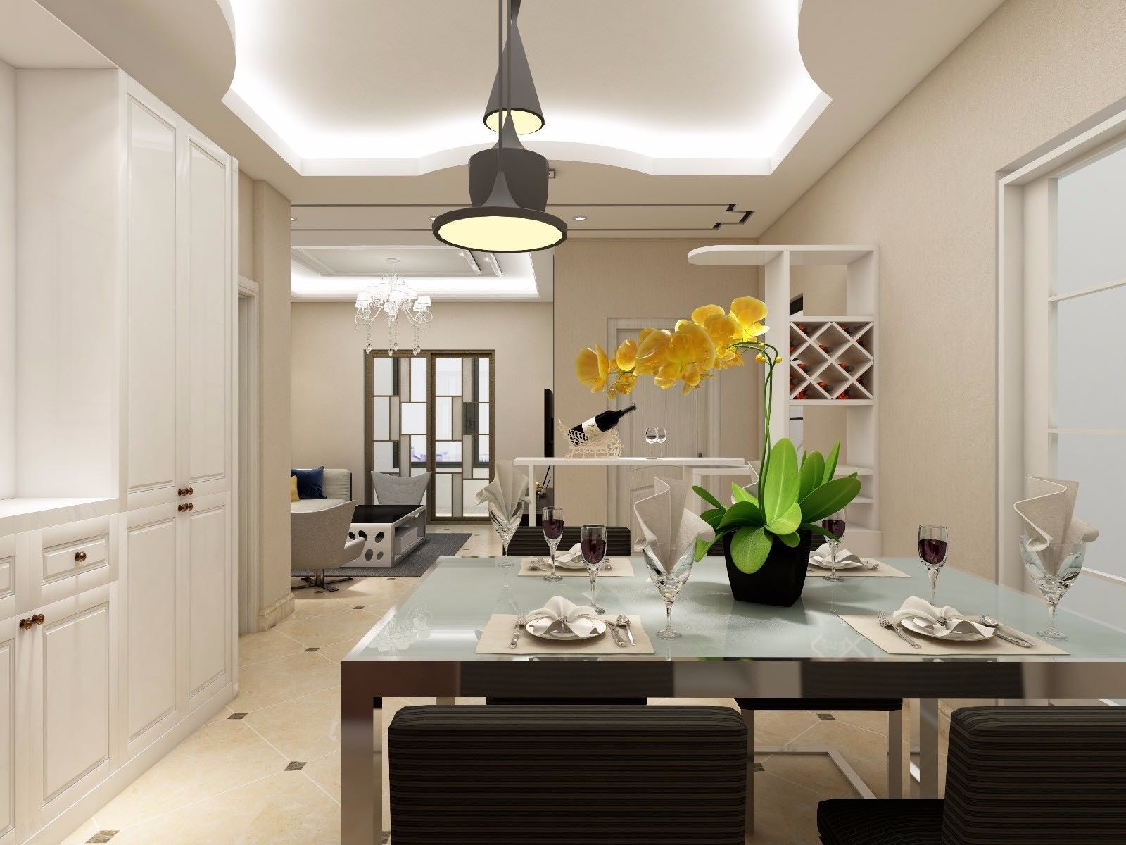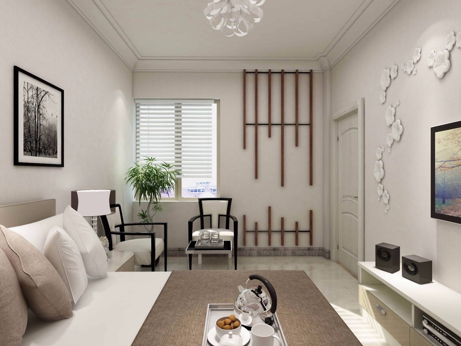 以白色為基調(diào),木色家具作為點綴,整個空間溫馨而舒適。