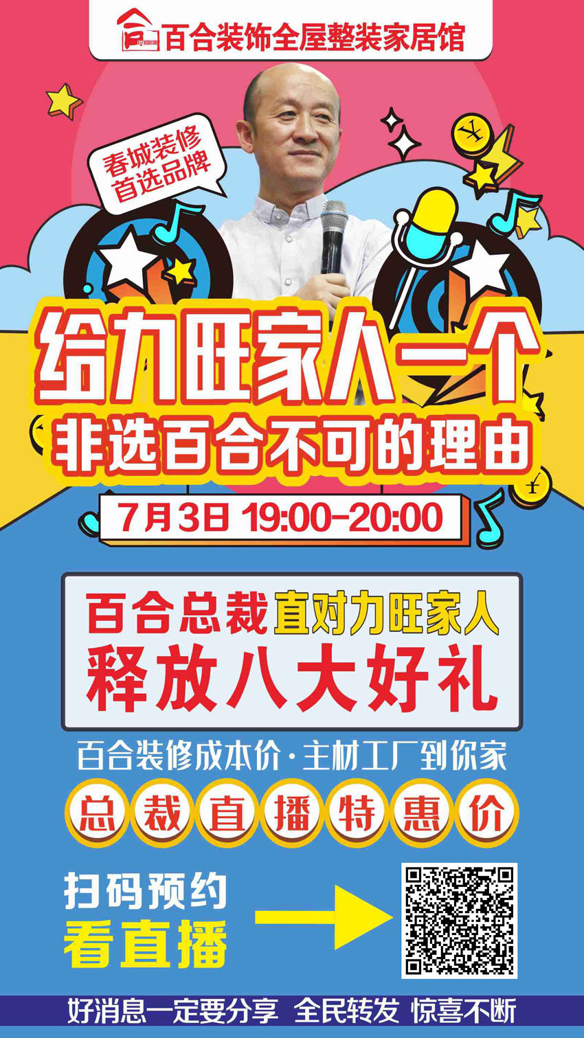 7月3號(hào)百合裝飾 總裁直播 力旺康城小區(qū)專(zhuān)場(chǎng)福利